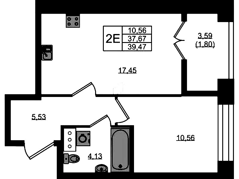 - Площадь39,47 м2