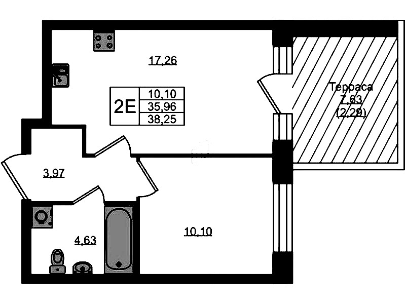 • Площадь38,25 м2