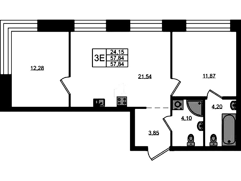 • Площадь57,84 м2