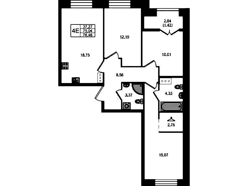 - Площадь76,46 м2