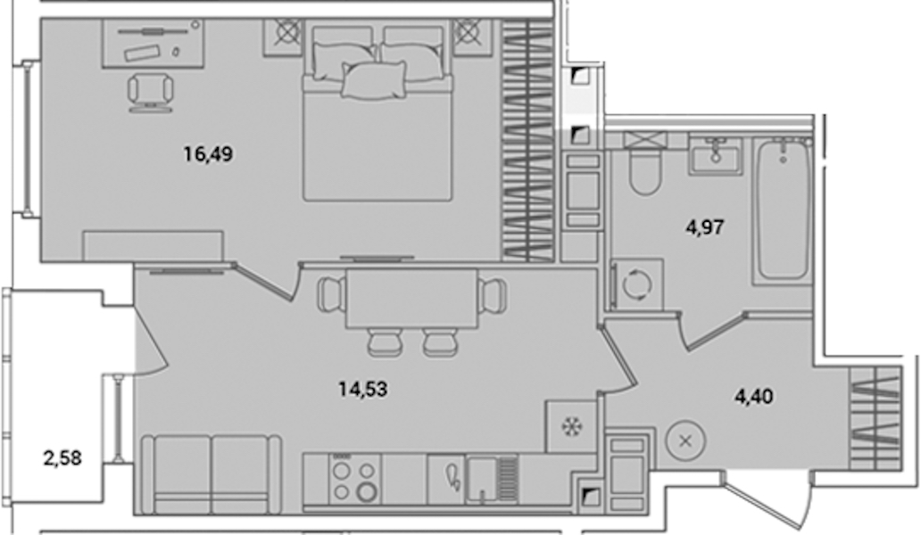 - Площадь41,68 м2