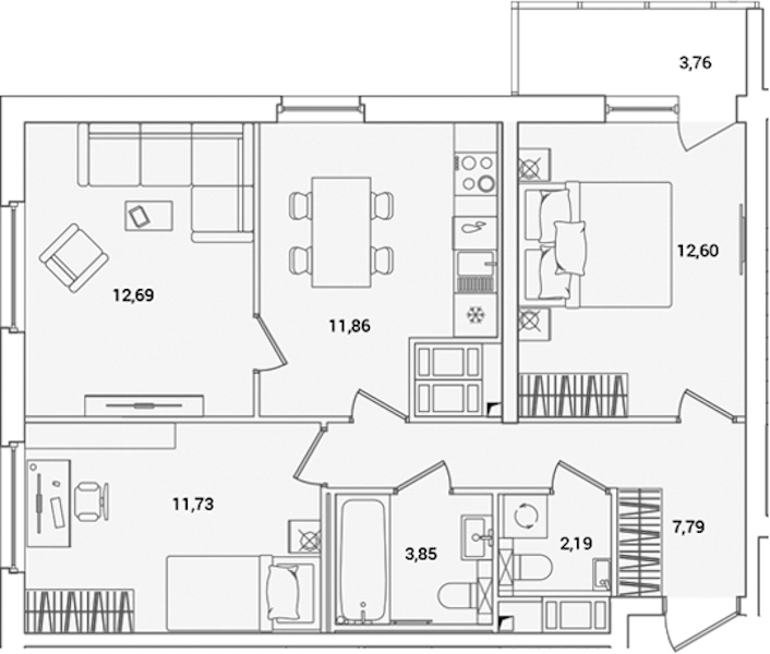 - Площадь кухни11,86 м2