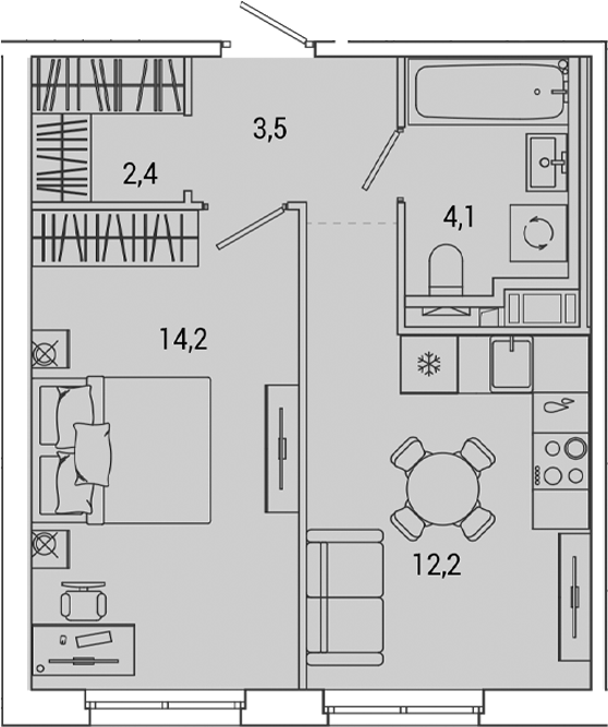 - Площадь кухни12,2 м2