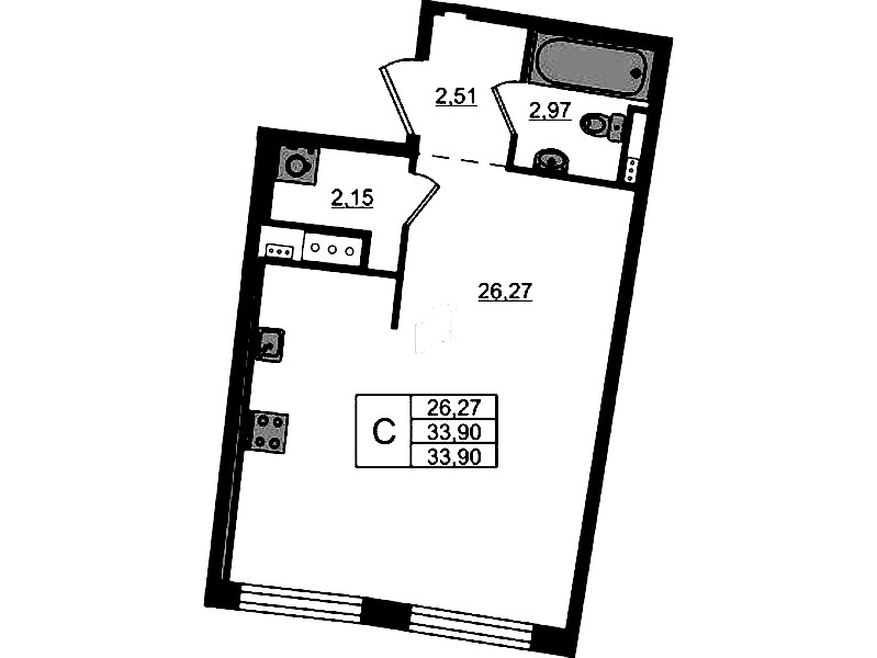 - Площадь33,9 м2