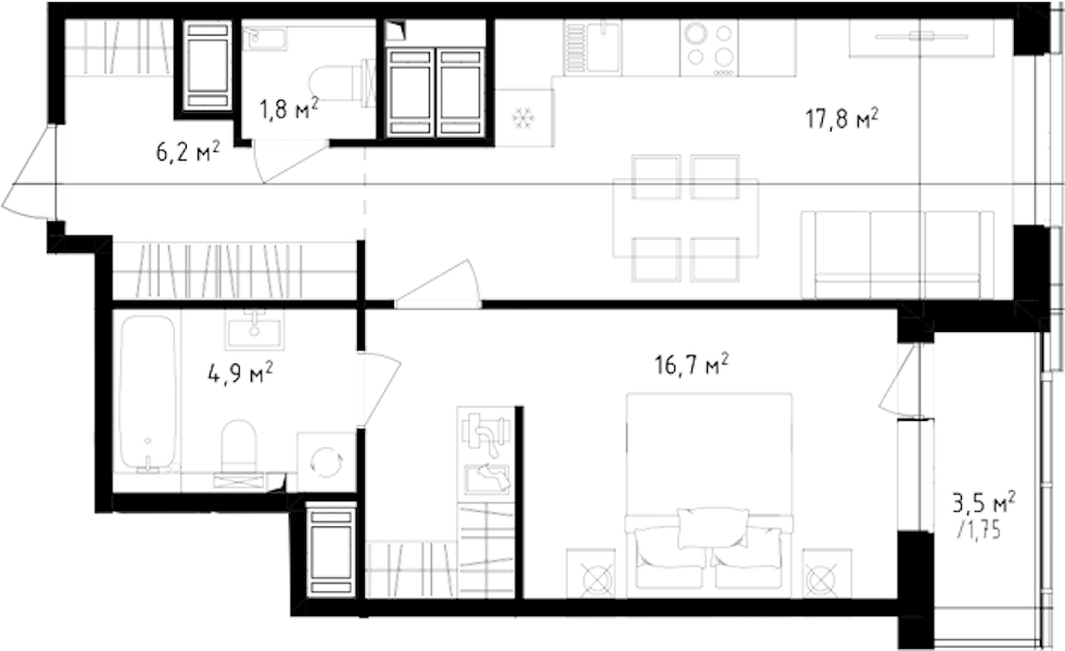 - Площадь кухни17,8 м2