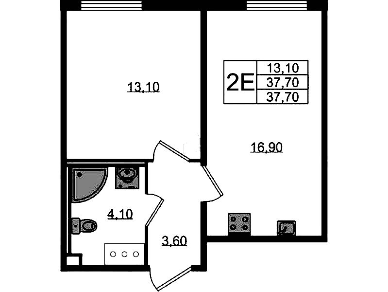 Однокомнатная квартира на 25-ом этаже 37,7 кв.м