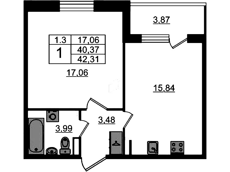 - Площадь40,37 м2