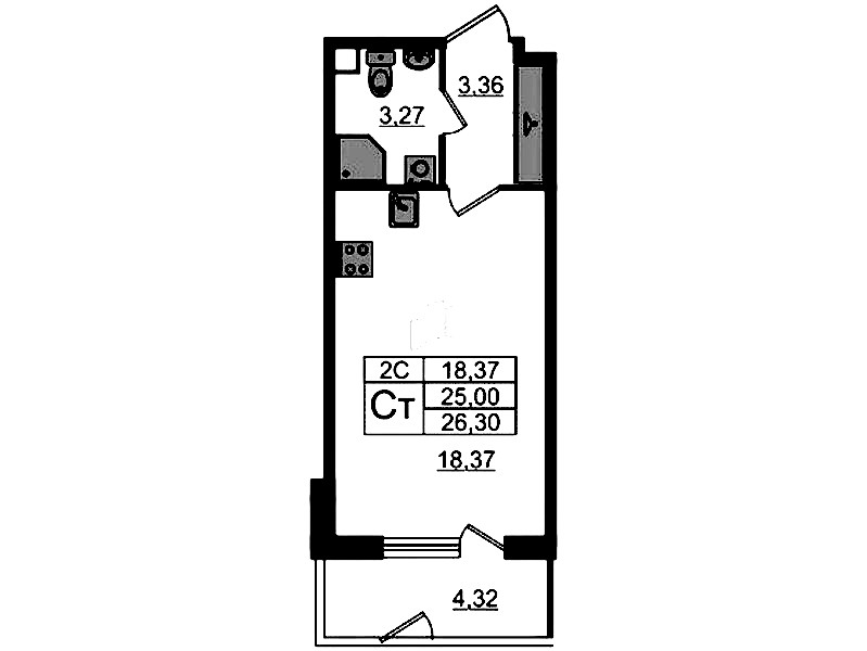 - Количество комнатСтудия