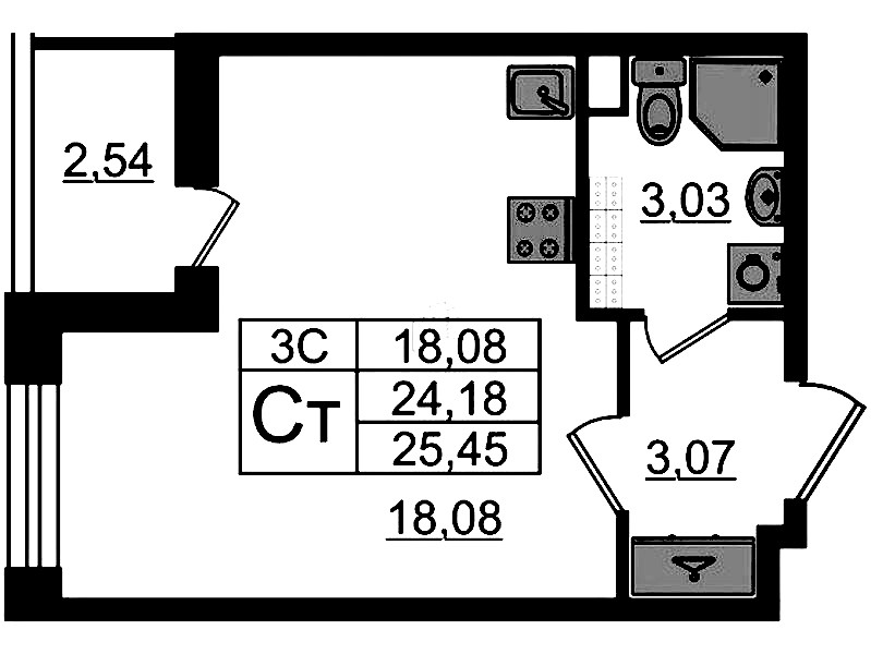- Площадь24,18 м2