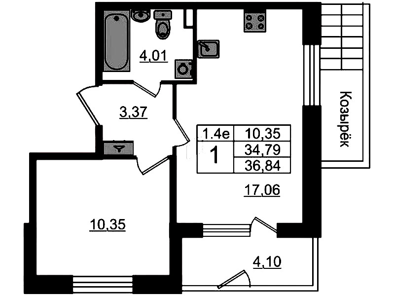 - Площадь34,79 м2