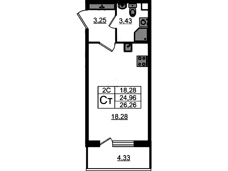 - Площадь24,96 м2