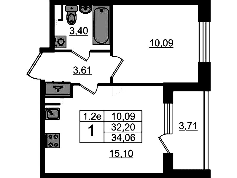 - Площадь32,2 м2