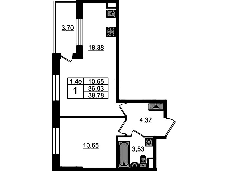 • Площадь36,93 м2