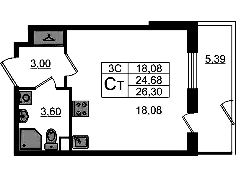 - Площадь24,68 м2