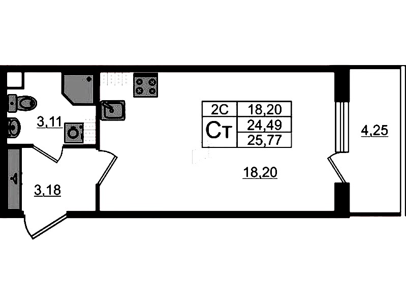 - Площадь24,49 м2