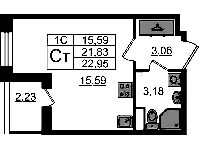 Квартира-студия на 2-ом этаже 21,83 кв.м