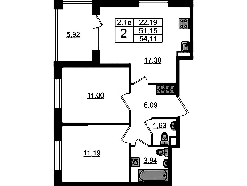 • Площадь51,15 м2