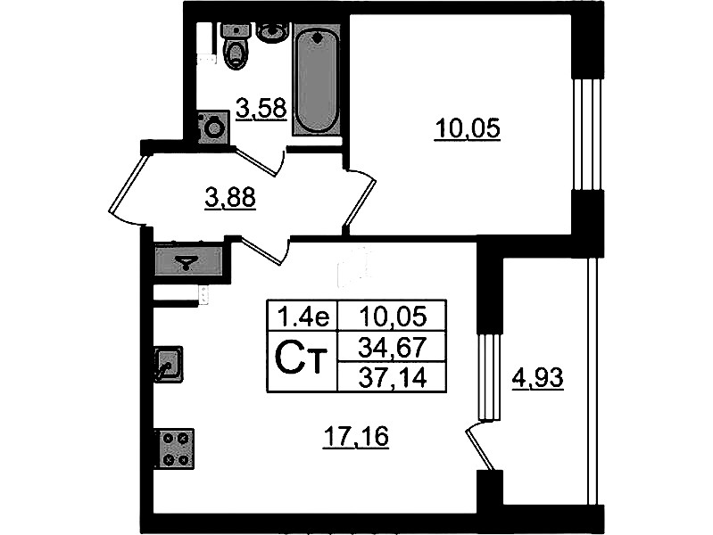 - Площадь34,67 м2