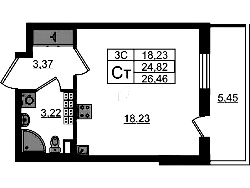 Квартира-студия на 5-ом этаже 24,82 кв.м