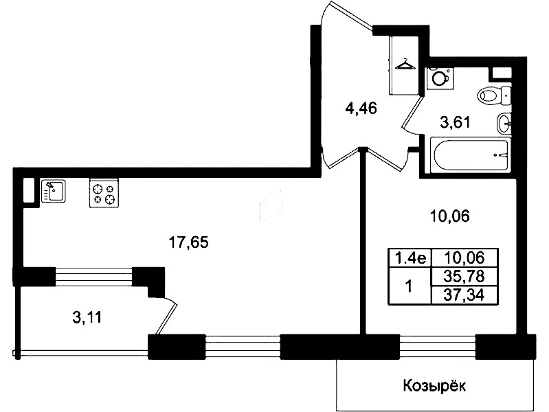 Однокомнатная квартира на 2-ом этаже 35,78 кв.м