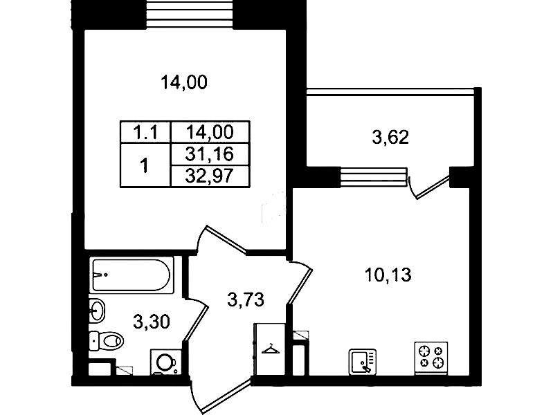 • Площадь31,16 м2