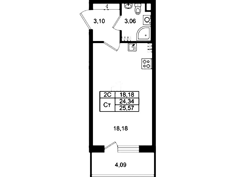 Квартира-студия на 5-ом этаже 24,34 кв.м
