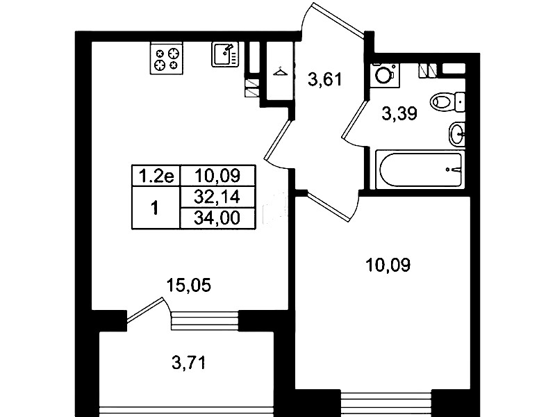 - Площадь кухни15,05 м2