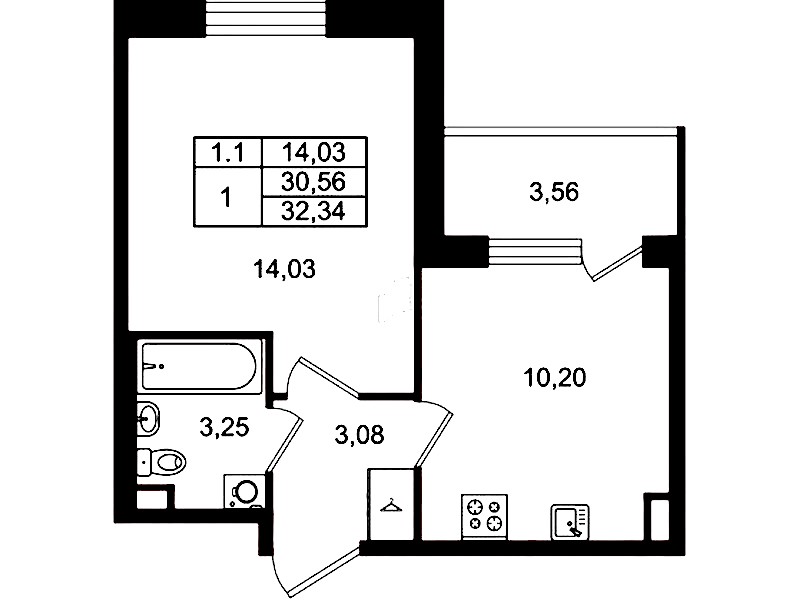 - Площадь30,56 м2