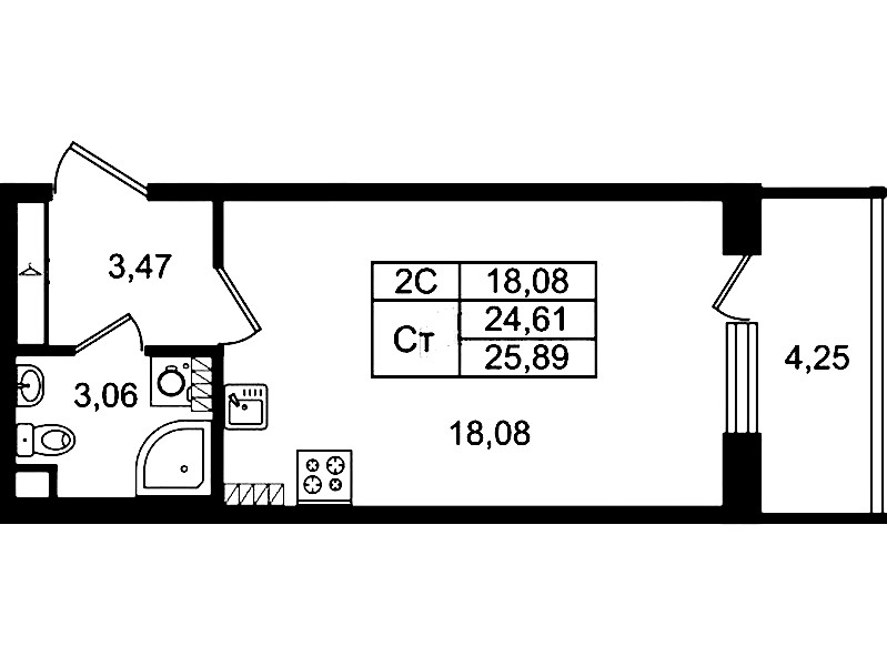 - Площадь24,61 м2