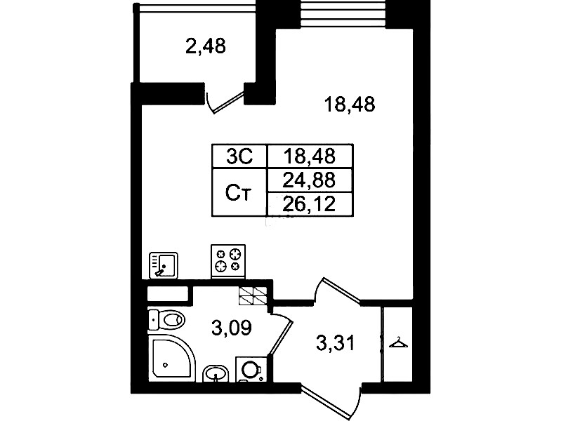 • Площадь24,88 м2