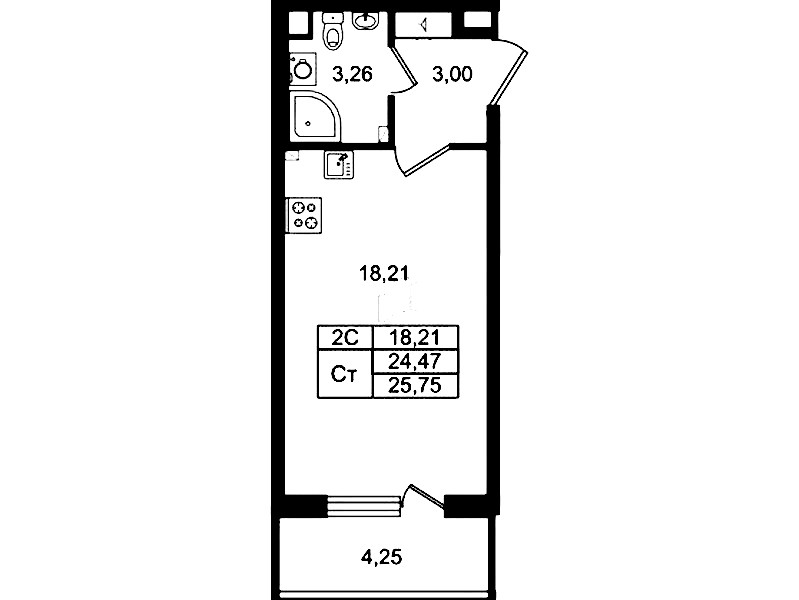 - Площадь24,47 м2