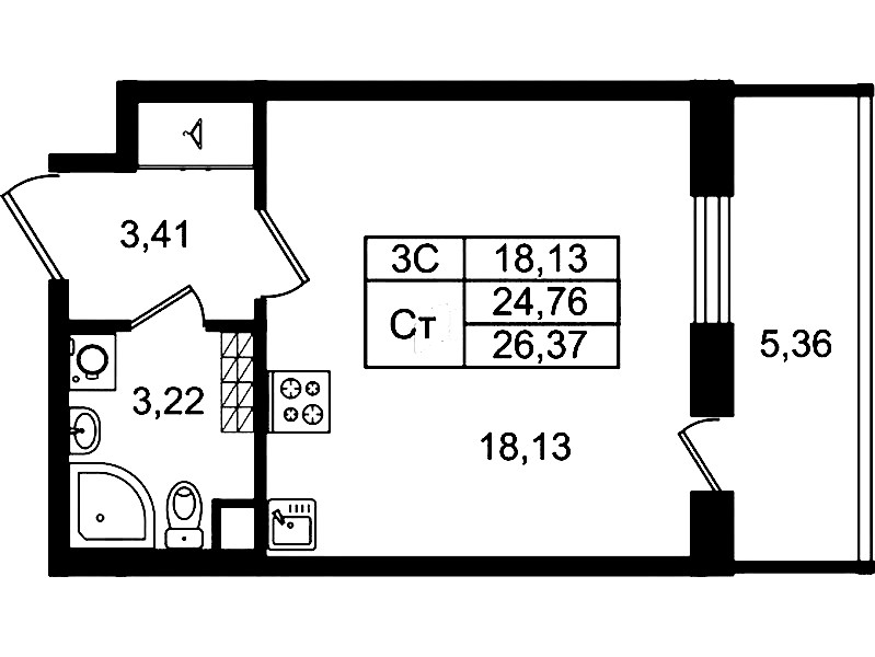 - Площадь24,76 м2