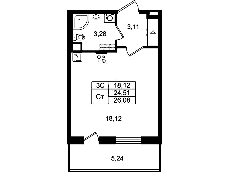 - Площадь24,51 м2