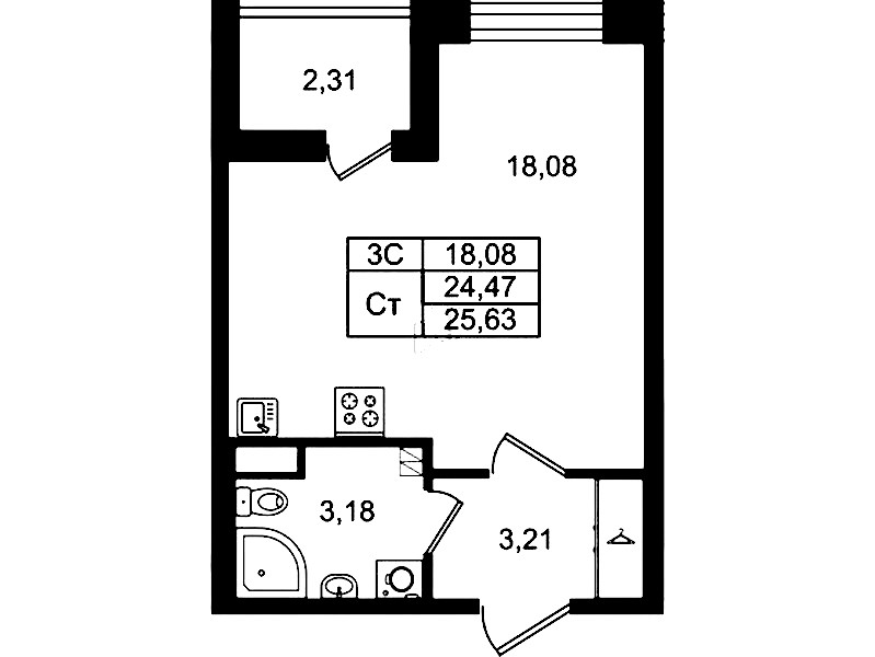 - Площадь24,47 м2