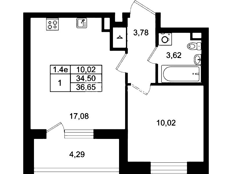Однокомнатная квартира на 2-ом этаже 34,5 кв.м