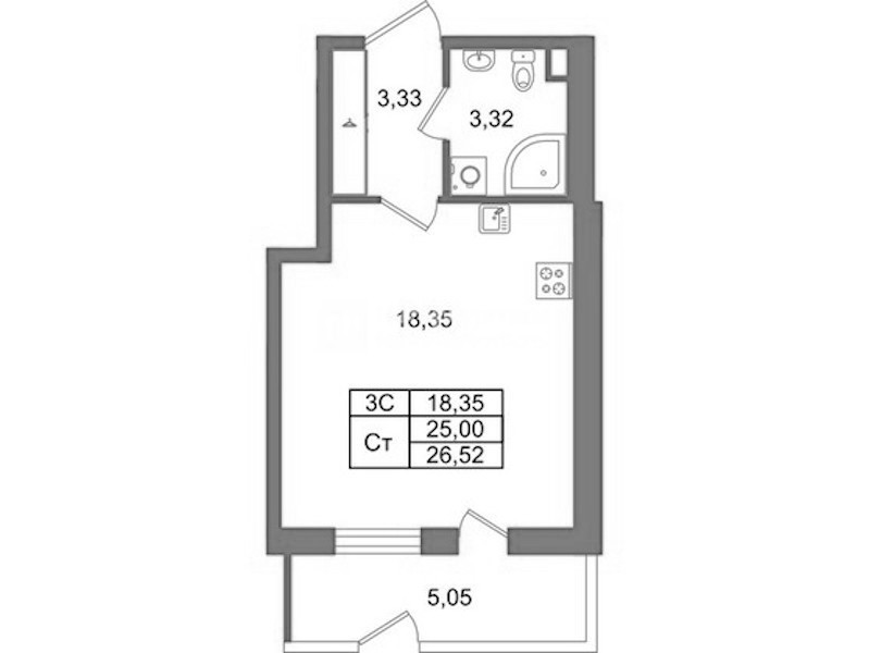 • Количество комнатСтудия