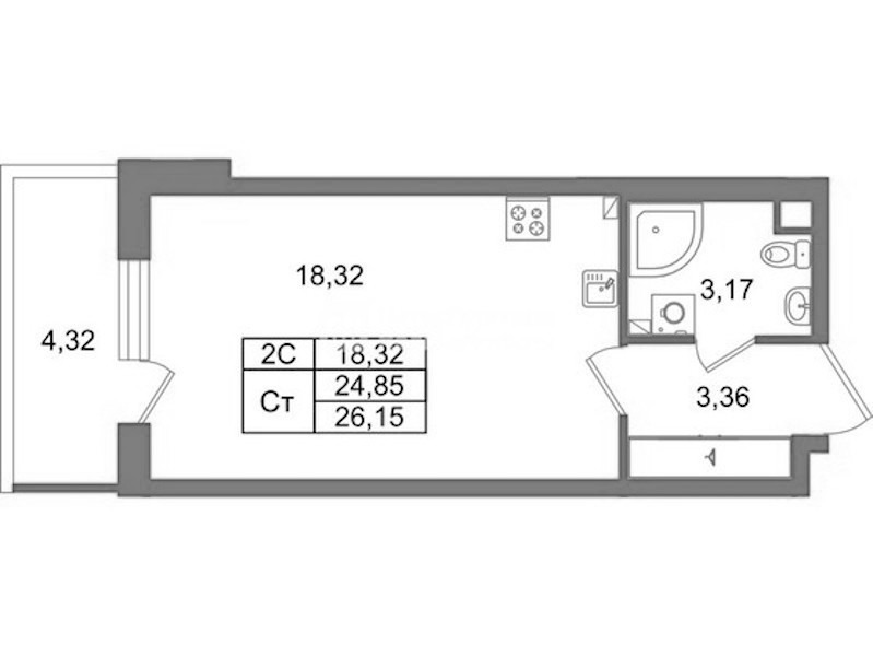 Квартира-студия на 2-ом этаже 24,85 кв.м