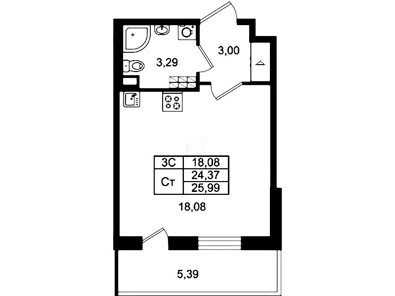 - Площадь24,37 м2