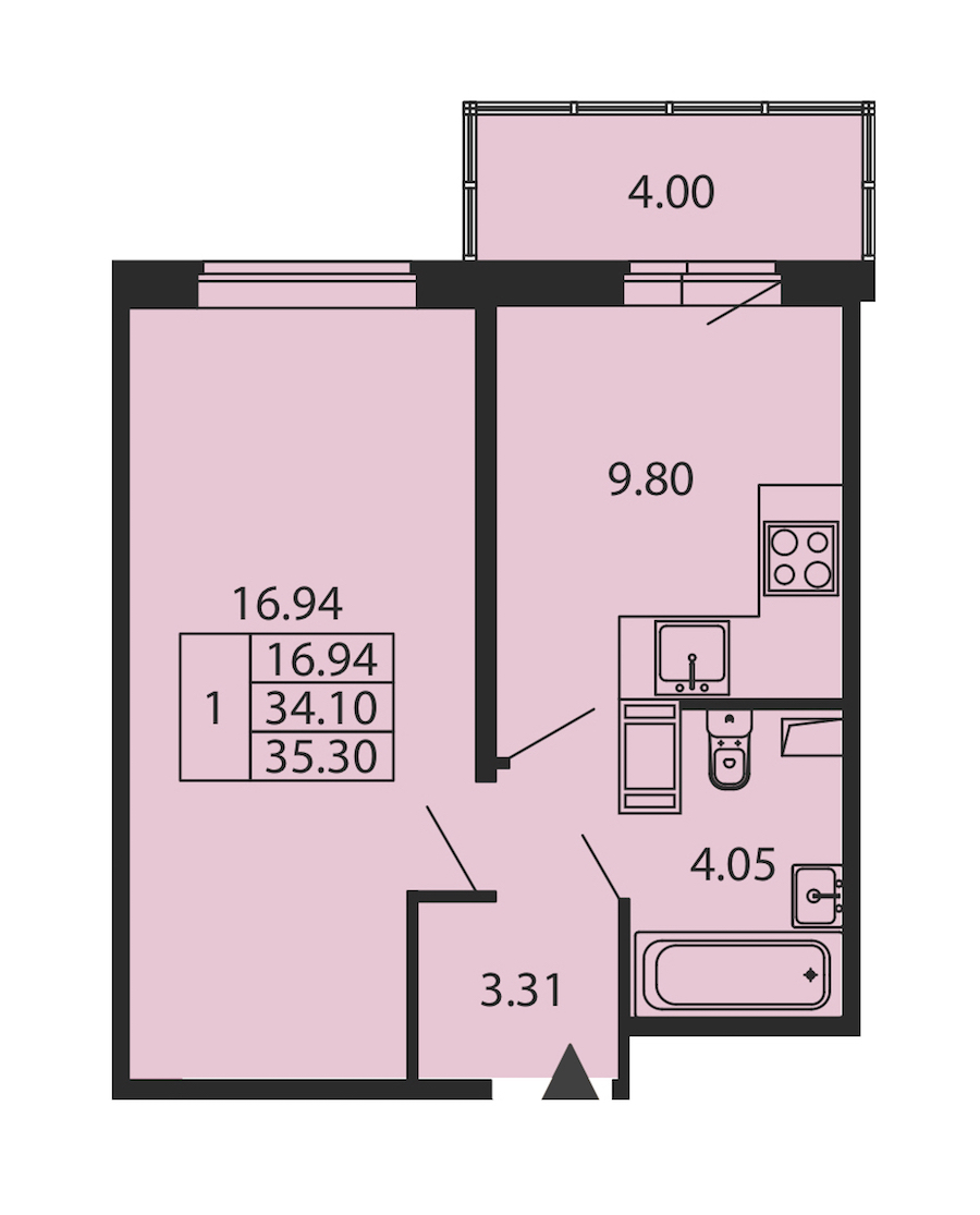 - Площадь34,1 м2