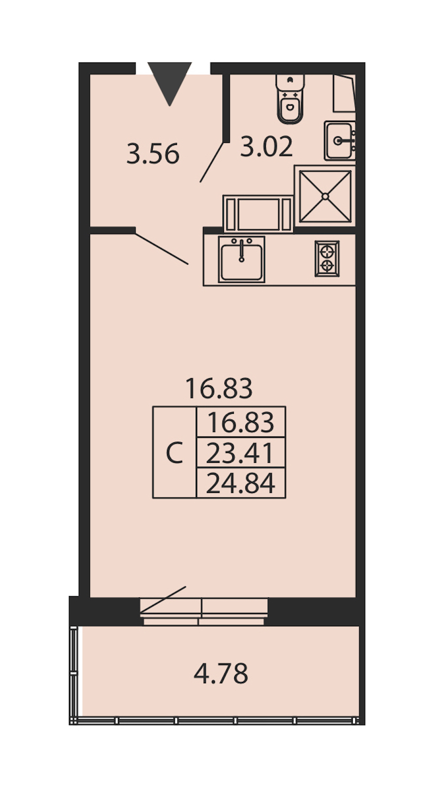 Квартира-студия на 12-ом этаже 23,41 кв.м