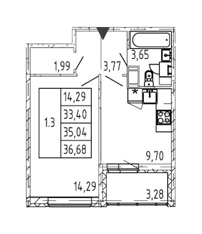 - Площадь33,4 м2