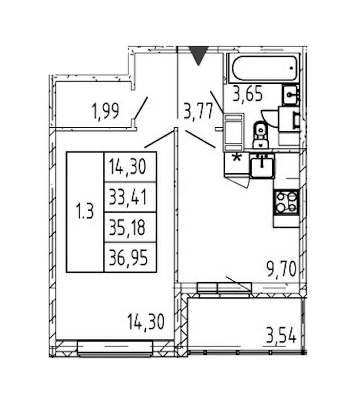 - Площадь33,41 м2