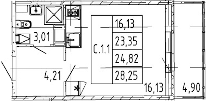 - Площадь23,35 м2
