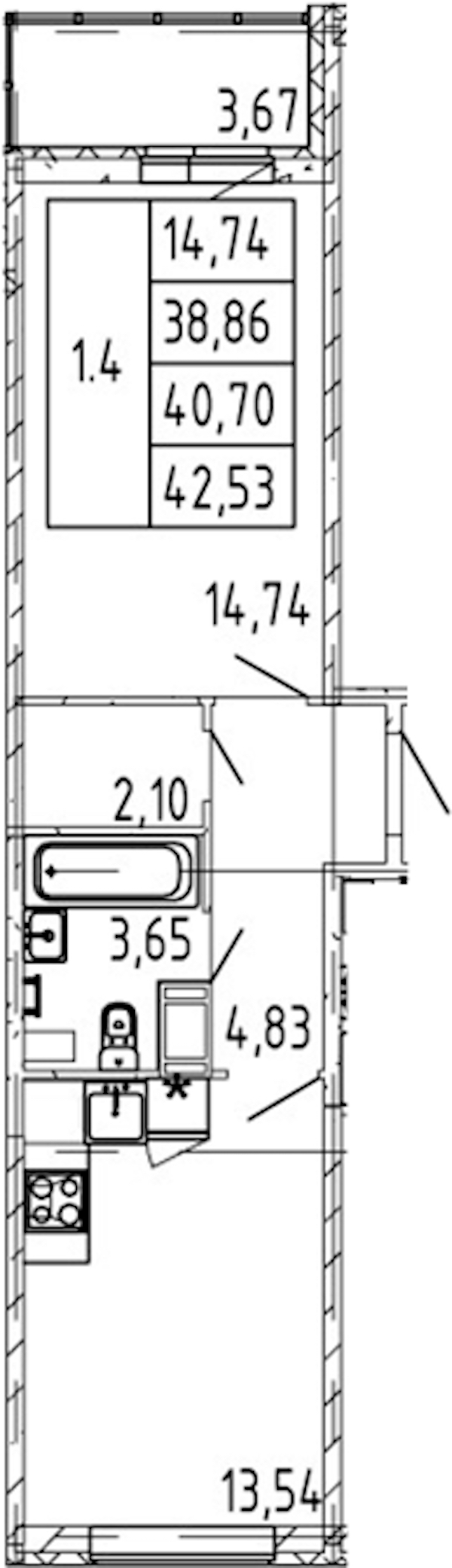 - Площадь кухни13,54 м2