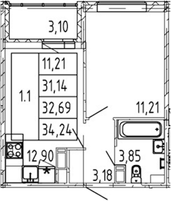 - Площадь31,14 м2