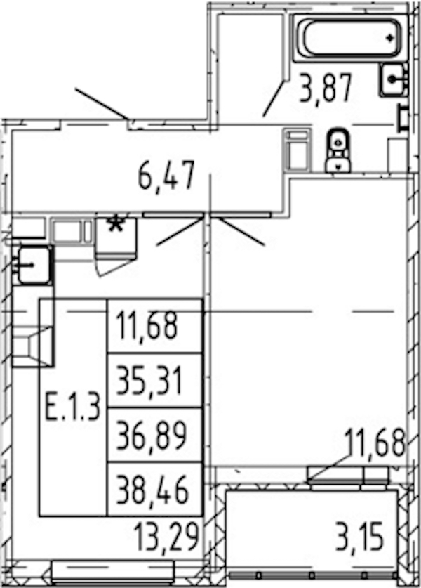 - Площадь35,31 м2