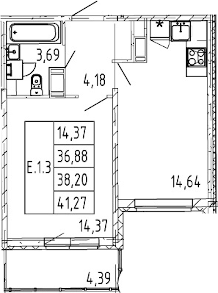 • Площадь кухни14,64 м2