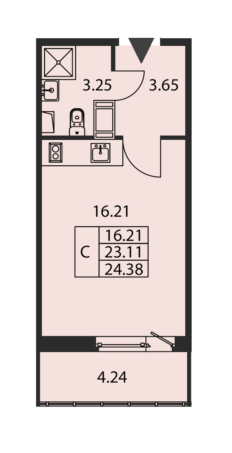 - Площадь23,11 м2