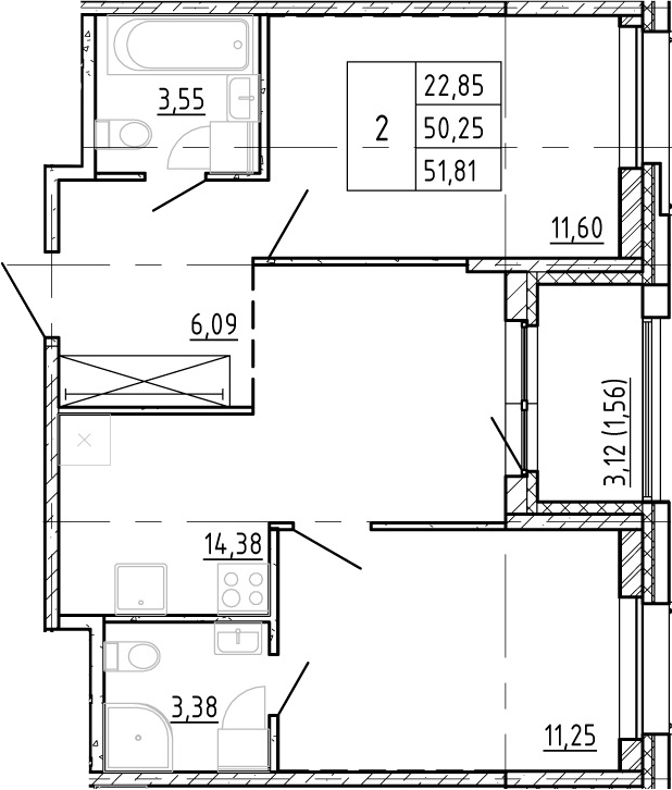 - Площадь50,25 м2