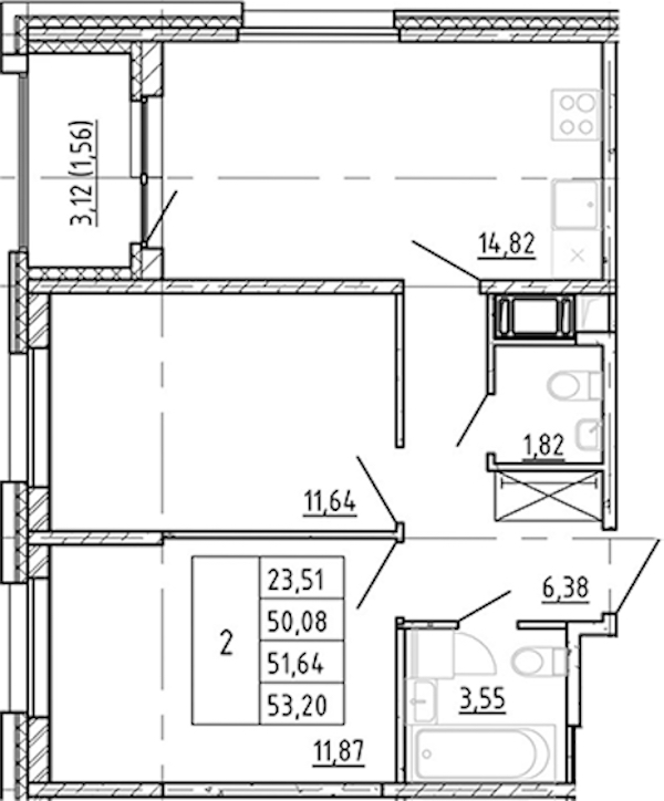 - Площадь50,08 м2
